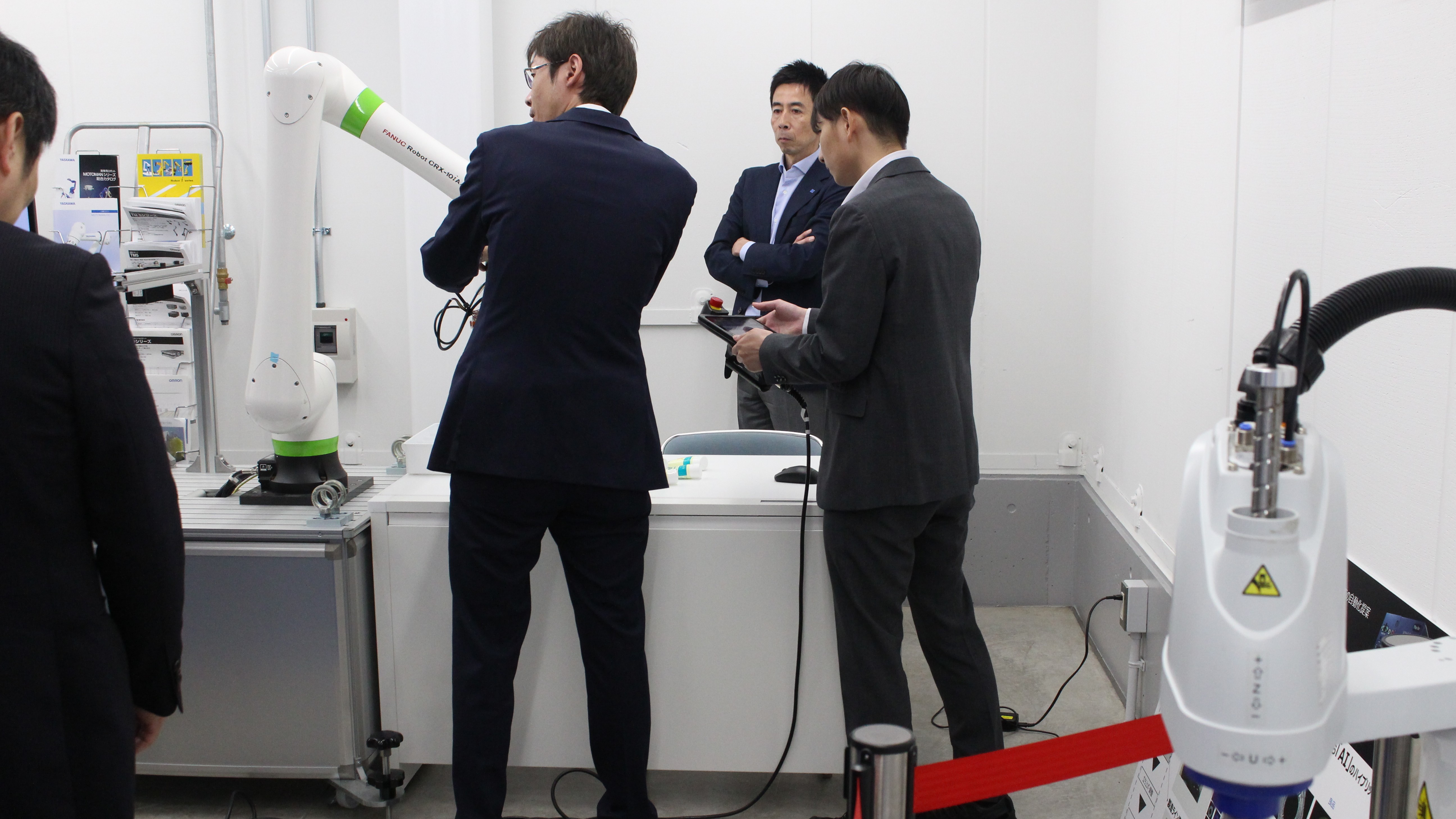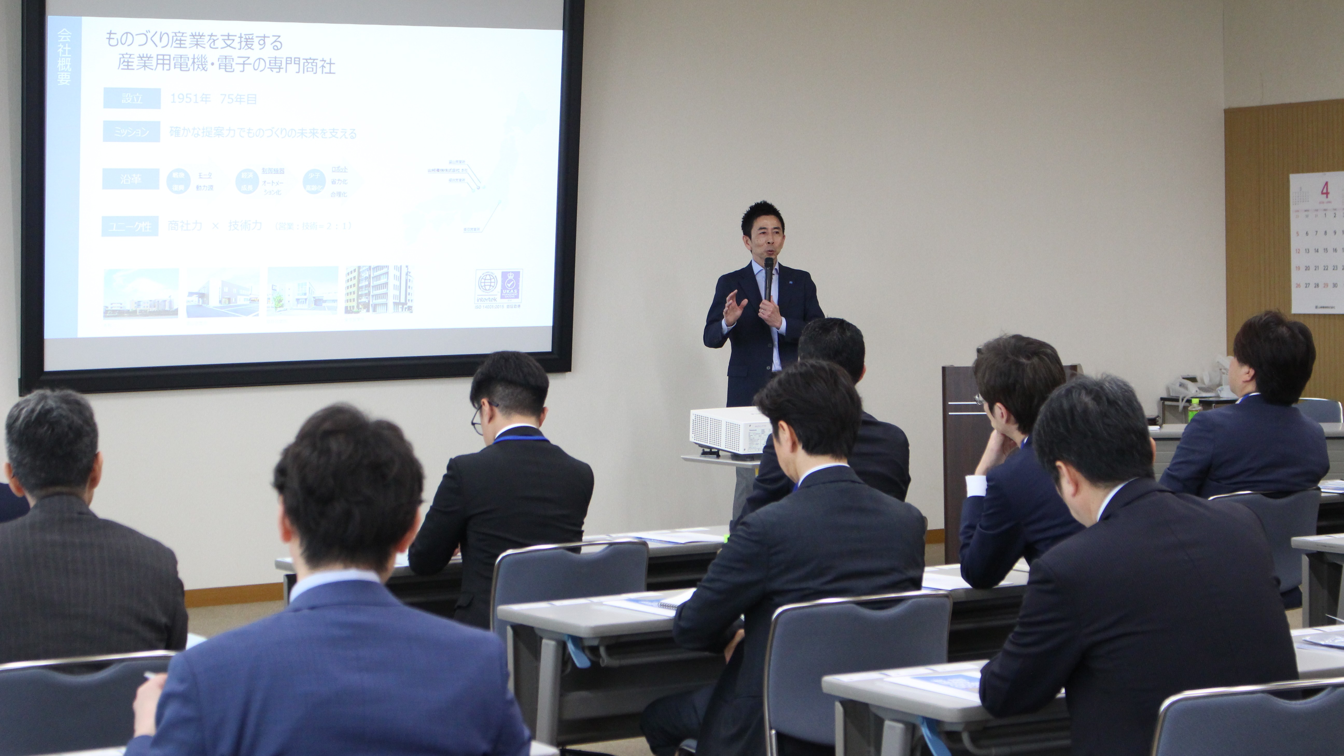 前半は、弊社社長の山崎から「人を大切にする経営」をテーマに講義を行い、後半は生産現場の省力化を支援する「ロボラボ」を見学していただきました。